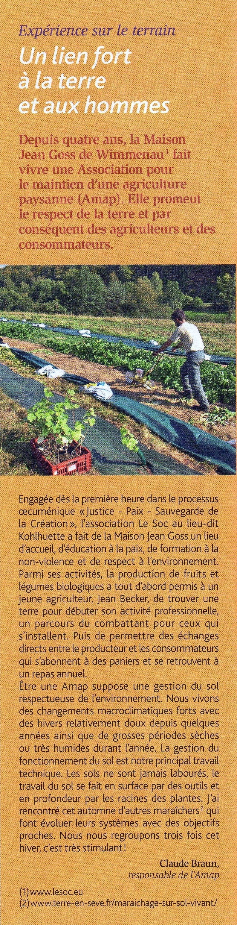 Jean Becker et l'AMAP de la KohlhuetteIngeborg31 mars 20151 min de lecture Le travail de Jean Becker est à l'honneur dans les DNA de Sarre-Union (cliquez ici), le "Carrefour d'Alsace" et Le Nouveau Messager (voir ci-dessous) ! L'affiche de l'AMAP ici ! Voir aussi pages 6 et 7 du Sillon du Soc de 2014 !